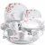 30-Piece White Porcelain Dinnerware Set with Pink Floral Design