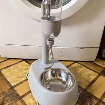 sooo happy i got this for my big ol' labrador! no tipping over, keeps him hydrated all day long...best part? less cleaning for me 😂👌.