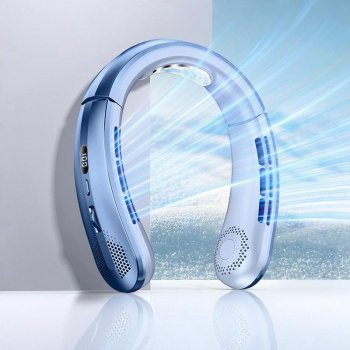 8000mAh USB Rechargeable Bladeless Neck Fan with LED Display – Portable & Silent Cooling