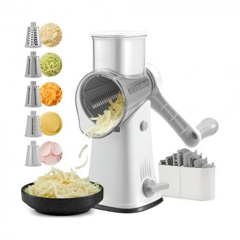 5-in-1 Rotary Cheese Grater & Vegetable Slicer with Stainless Steel Blades