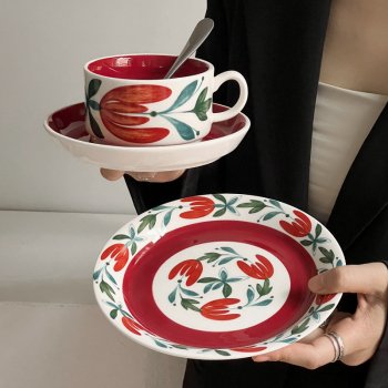 Large Ceramic Coffee Mug with Lid & Spoon – 700ml Vintage Style Cup