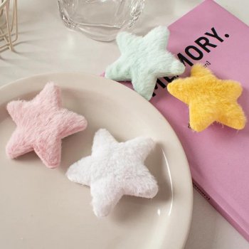 4pcs Sweet Fluffy Star Hairpins for Girls – Cute Faux Fur Bobby Pins in Solid Colors