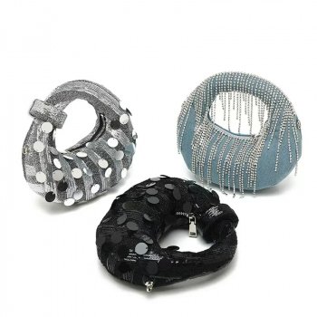 Luxury Denim Rhinestone Evening Clutch with Tassel & Chain Strap