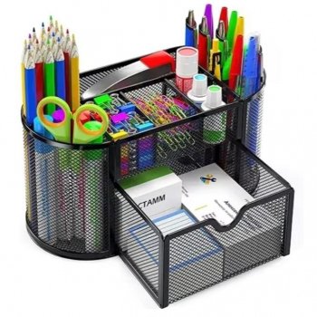Mesh Desk Organizer with 8 Compartments and Drawer – Multi-Functional Office Caddy
