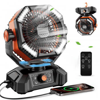 20000mAh Rechargeable Camping Fan with LED Light, 8 Speeds & Remote Control