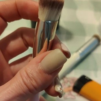Love this brush! It's perfect for blending around the eyes and nose. Super soft bristles and doesn't absorb product.